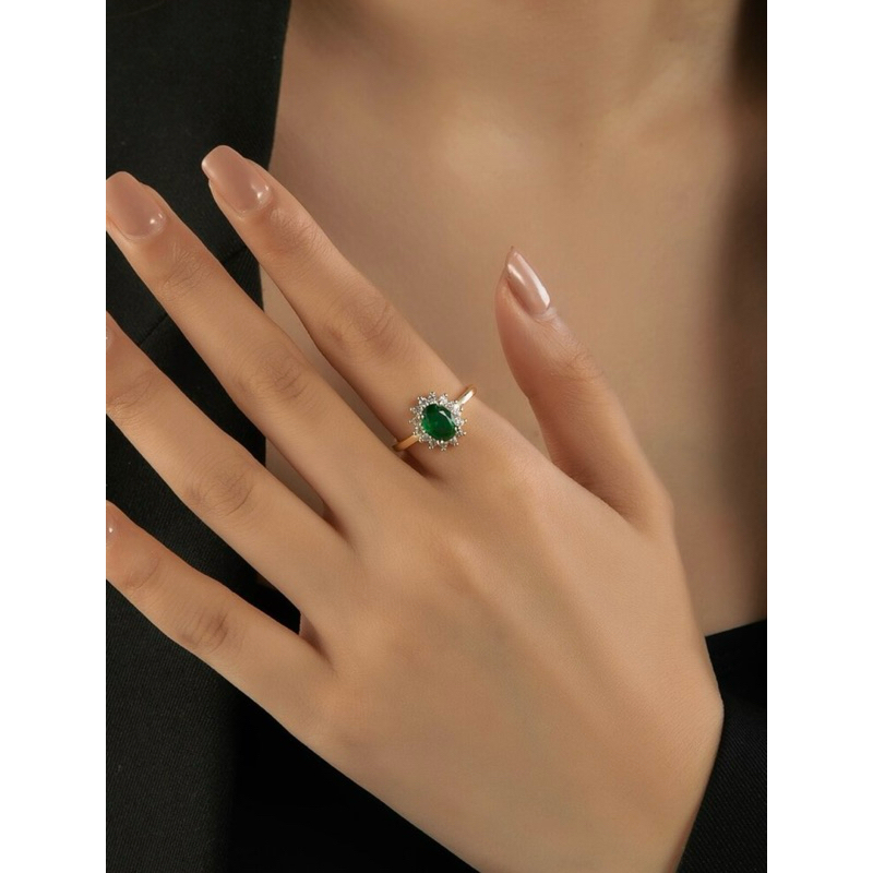 Anel Solitário Ajustável Pedraria Strass Festa Casamento Formatura Verde