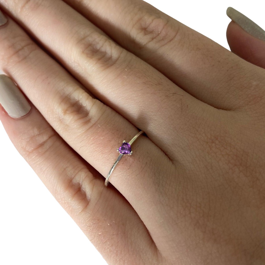 Anel Solitário Ametista Coração Prata 925 - Exclusivo