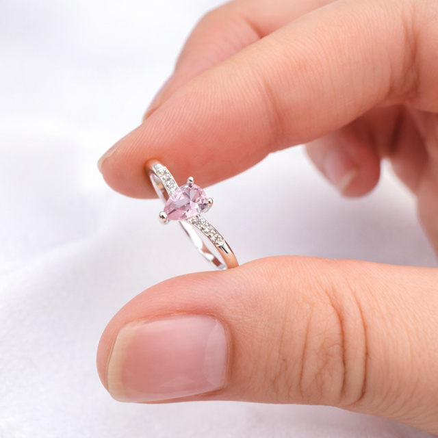 Anel Solitario Zirconia Rosa Gota Banhada a Prata 925/Ouro
