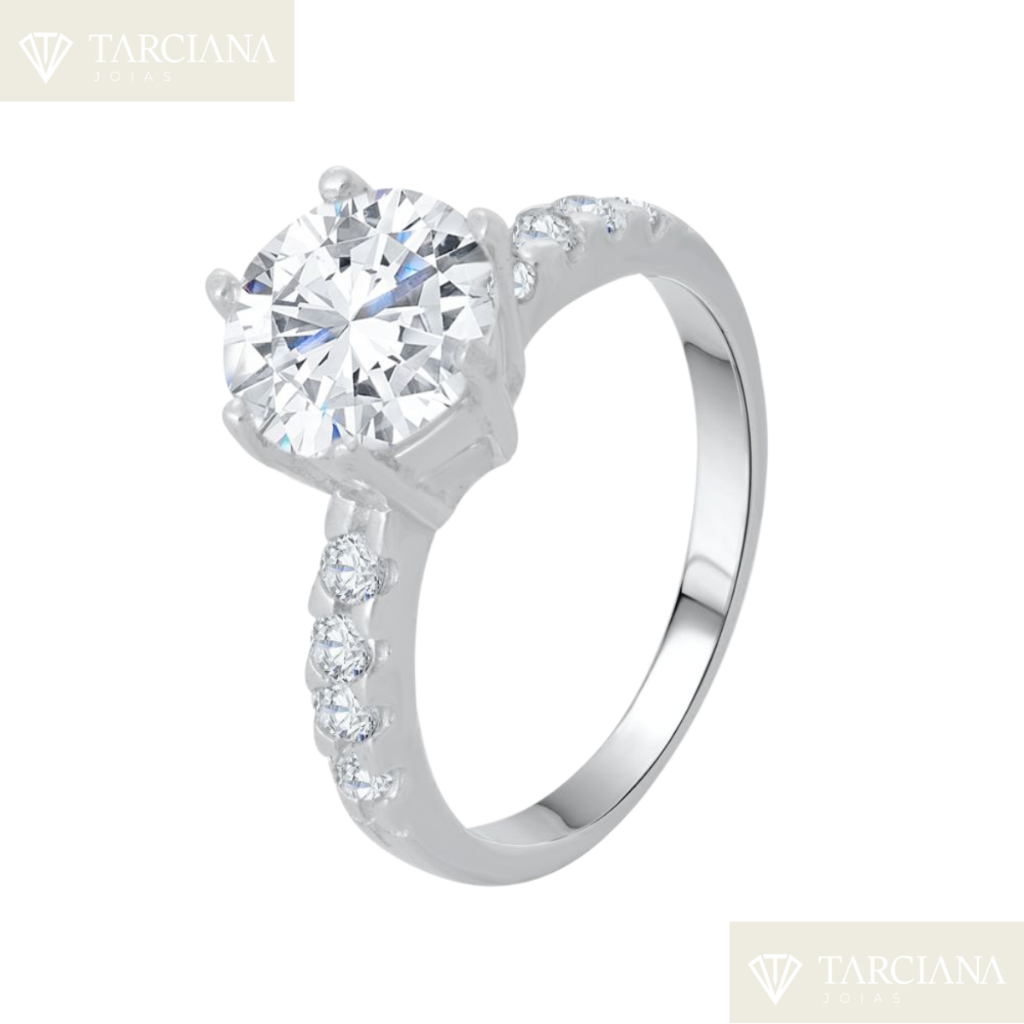 Anel Zircônia Redonda Grande e Zircônia No Aro Joia De Qualidade Elegante Confortavel Estilo Único Acessório Elegante