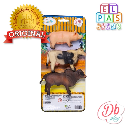 Animais Fazenda Porco Boi Vaca Cartela Em Vinil - DB Play Bichinhos de vinil colecionável com tamanho médio de 12 cm de comprimento Produto 100% nacional Material atóxico, macio e indicado para qualquer idade. ***ATENÇÃO: IMAGENS MERAMENTE ILUSTRATIVAS, AS CORES PODEM VARIAR***