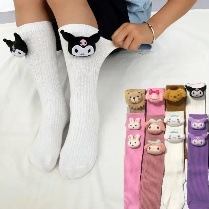 Anime Kuromi Melodia Meias Para Crianças Meninas Dos Desenhos Animados Kawaii Estilo Coreano Mid-Tube Na Moda Estudante