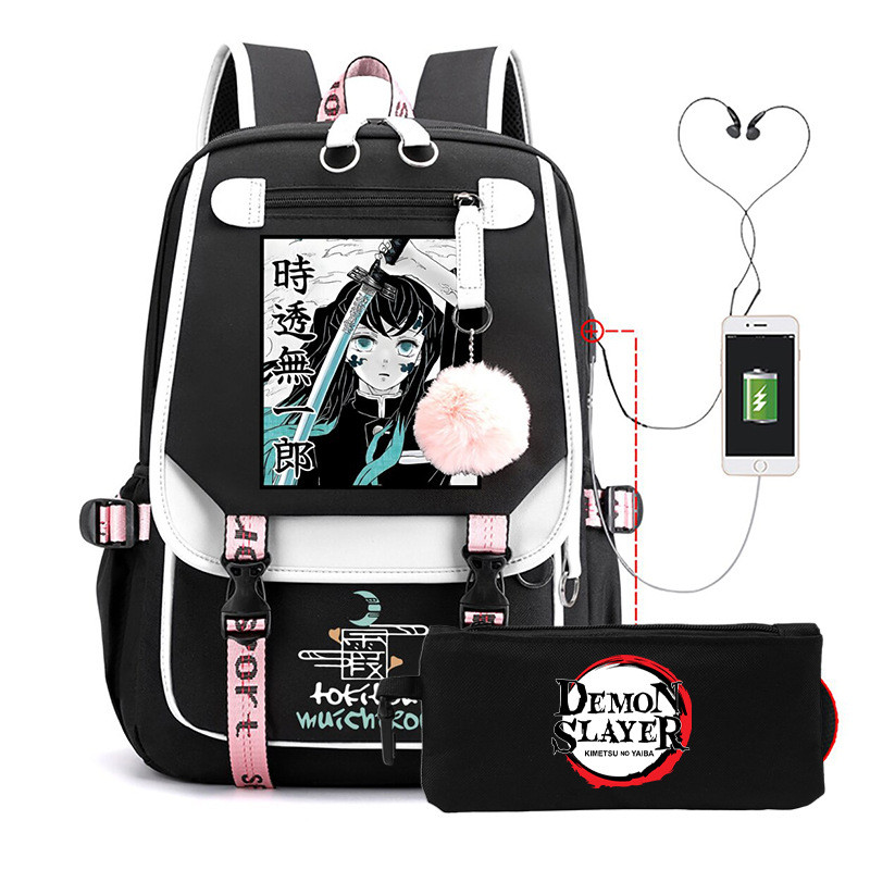 Anime mochila versão coreana Tokitou Muichirou mercadoria Demon Slayer mochila conjunto estudante lápis caso