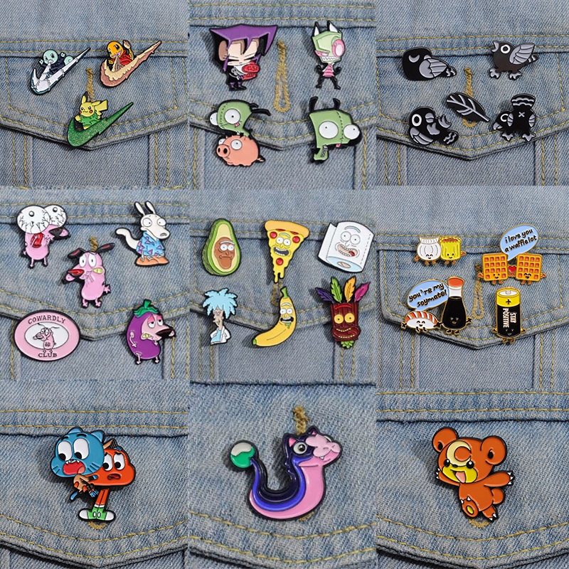 Anime Pikachu Venom Pins Esmalte Coragem De Desenhos Animados X Pregadeira De Cachorro Cowardly Broche Hippo Frog Pin Lapela Crachás Jóias Presentes