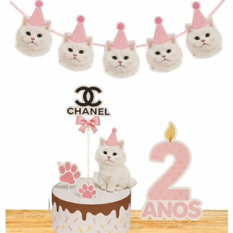 O kit festinha contém: 1 Displays de mesa idade 1 Topo de bolo personalizado (personalizado com nome, idade e 1 foto do pet) 1 varal de foto do pet - Ao adquirir esse produto ENVIAR LOGO APÓS A COMPRA: -nome -idade -2 fotos de boa resolução de corpo inteiro do pet (Iremos avaliar qual fica em melhor resolução) O kit é personalizado conforme o tema que o cliente queira. *não enviamos arte para aprovação Os kits são personalizados portanto NÃO SÃO A PRONTA ENTREGA. - NENHUMA parte deste kit é produzida em material acrílico ou MDF. (impressão em papel fotográfico 180g) Observações Relevantes: - O prazo de entrega é estipulado pelo próprio site, sempre compre com antecedência. - Não nós responsabilizamos por atrasos devido ao correio e portanto não fazemos reembolso por este motivo, então tenha ciência de pedir com antecedência para que não ocorra atraso! - Não aceitamos devoluções de itens abertos e avariados, afinal nosso produto é personalizado para cada cliente. - Esse kit não terá qualquer alteração a pedido (troca de item) apenas personalização com os dados enviados