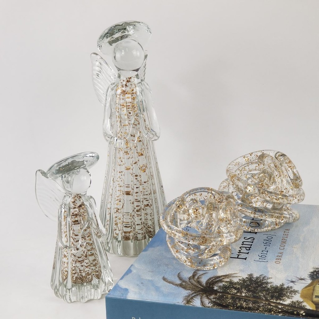 | Anjo de Murano Decorativo com Pó Dourado Grande - Laradore este produto | R$ 229,99 | — | 5.0/5 | 4 |