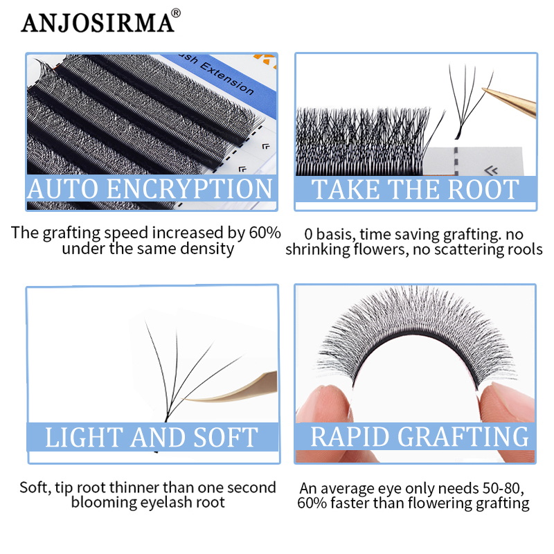 ANJOSIRMA 4D W Extensão Em Forma De Cílios Volume Pré-Fabricado Estilo De Ventilador Faux Mink Soft Easy Natural