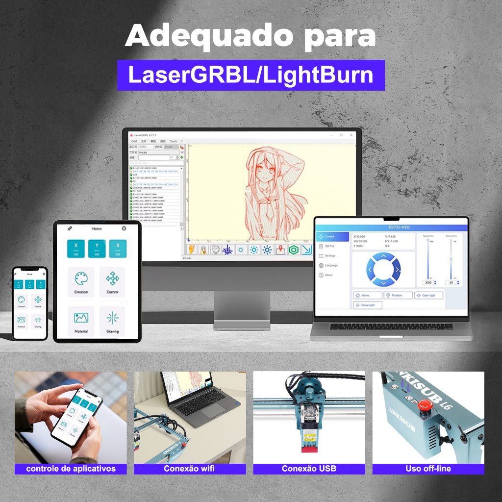 🛒A máquina com a melhor relação custo-benefício do mercado, ideal para quem se quer iniciar no negócio, permite realizar um vasto leque de possibilidades através da gravação e corte a laser. - Objetos escultóricos: todos feitos de madeira, bambu, papel, plástico, couro, placa PCB, óxido de alumínio, revestimento antirreflexo e metal anodizado, cerâmica (deve ser pintada de preto) - Objectos de corte: cartão, tecido, madeira clara, MDF, material acrílico, placa plástica fina...etc. Com uma grande mesa de trabalho de 400 * 400 mm e um módulo laser de focagem fixa de 48 W, este gravador a laser de mesa profissional é fácil de montar e capaz de fornecer o laser de 5,5 W 450 nm para gravação e corte de alta precisão e alta eficiência de vários materiais, tais como aço inoxidável, plástico , madeira, papel, etc., que nunca o irão desiludir. 🛒Características: Gama de gravação de 400 x 400 mm Grande área de escultura, sem limite de altura da escultura, para que possa esculpir como quiser. Projeto de plataforma de elevação e ajuste de correia no eixo X O dispositivo de elevação atualizado e o design da pega no eixo X são convenientes para mover para cima e permitem um melhor controlo de precisão ao esculpir. módulo laser 5,5 W com dissipador de calor, gravação a laser de alta eficiência. Design modular, desempenho mais estável e três drivers de motor de passo podem proporcionar uma velocidade de movimento mais rápida, completando a gravação de alta eficiência. Adota tecnologia de compressão e agregação de pontos, o que torna a energia da fonte de luz mais concentrada, de alta precisão e alta eficiência. Modo de gravação de fotografia, texto, digitalização, contorno, gravação a laser de pixéis. Controlo de software profissional LaserGrbl (Windows), Lightburn (todos) Grave aço inoxidável, metais anodizados, plástico, cerâmica, madeira, bambu, papel, couro, borracha, papel esponja, etc. (Não suporta gravação em pedra, vidro, materiais reflectores ou transparentes). 🛒Especificações: -Material: liga de alumínio - Cor: verde aurora Porta de comunicação: micro USB Entrada de alimentação: CA 100 240 V Potência de entrada: 48 W Potência do laser: 5.000 mW 5.500 mW Comprimento de onda do laser: 445 55 nm -Área de gravação: 40*40 cm - Precisão de gravação: 0,01 mm - Suporte ao sistema: MAC, Windows, Android - Placa de controlo: ESP32, MKS - Tamanho da embalagem: cerca de 64x 28x 16,8 cm -Peso da embalagem: cerca de 5500g 🛒Observação: 1. Leia o manual do utilizador antes de utilizar. 2.º A máquina de gravação a laser não pode atuar diretamente sobre qualquer objeto especular. Isto pode causar ferimentos no operador ou queimar o laser. 3. O produto tem uma elevada velocidade de gravação e não é recomendado para utilização em corte industrial. 4.º Use óculos de proteção laser durante a utilização e evite tocar diretamente no laser com os olhos e a pele! Além disso, não utilize a cabeça do laser diretamente com as mãos. Para garantir a segurança pessoal das crianças, à prova de fogo e longe do ambiente. 5.º Desligue a alimentação quando não estiver a ser utilizada. 🛒Garantia do vendedor: 3 meses #ANKISUB #L6 #gravador a laser #máquina #3d impressora #110V#220V #impressora a laser #5.5W