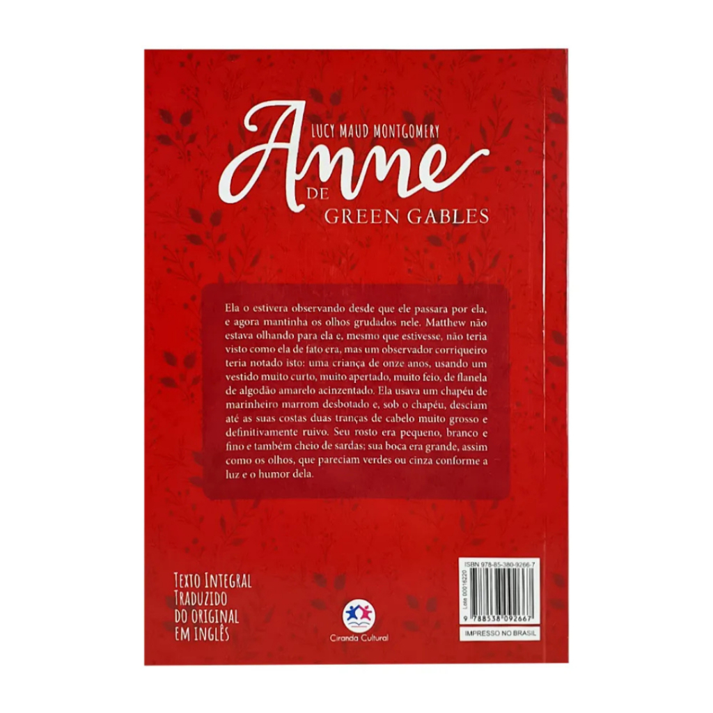 Anne é uma orfão que foi enviada por engano ˆ fazenda de Green Gables, já que os irmãos Marilla e Matthew tinham a intenão de adotar um menino. Com pena da garota, resolveram mantÊ-la na fazenda. Com seus longos cabelos ruivos, olhos acinzentados e uma imaginação que lhe permitia viver fantasias, Anne traz reflexões e pensamentos pertinentes sobre os obstáculos e as escolhas da vida de qualquer pré-adolescente336 páginas23x16cm