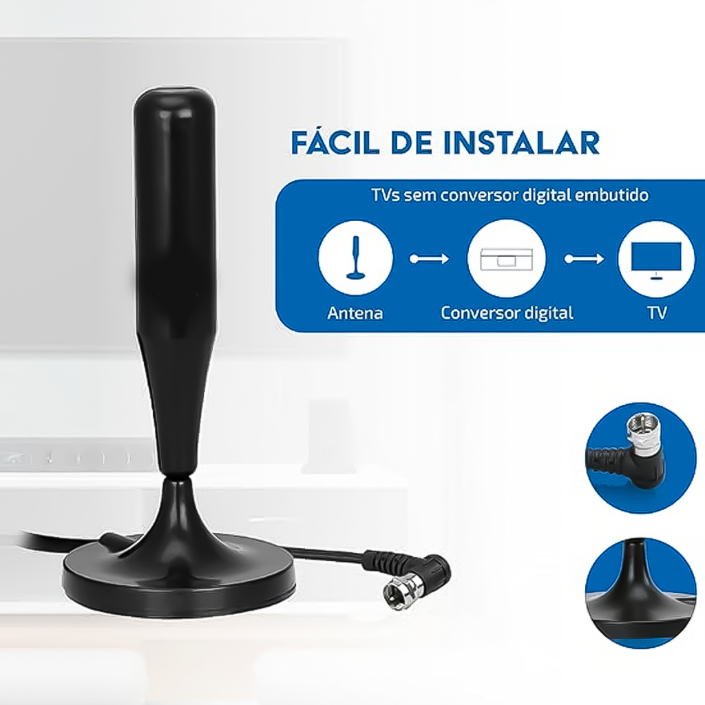 Antena 4K FULL HD TV Digital Cabo 3M Uso Interno E Externo Sinal Canal Aberto Televisão Casa Apto
