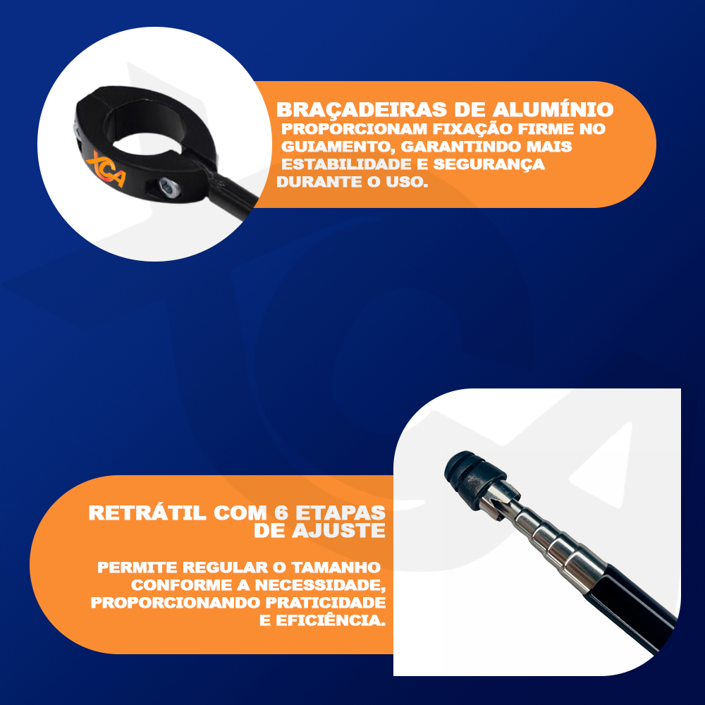 Antena Corta Retrátil Pipa Aço Inox Reforçado Para Moto – 7 Estágios Anti-Cerol, Fixação no Guidão