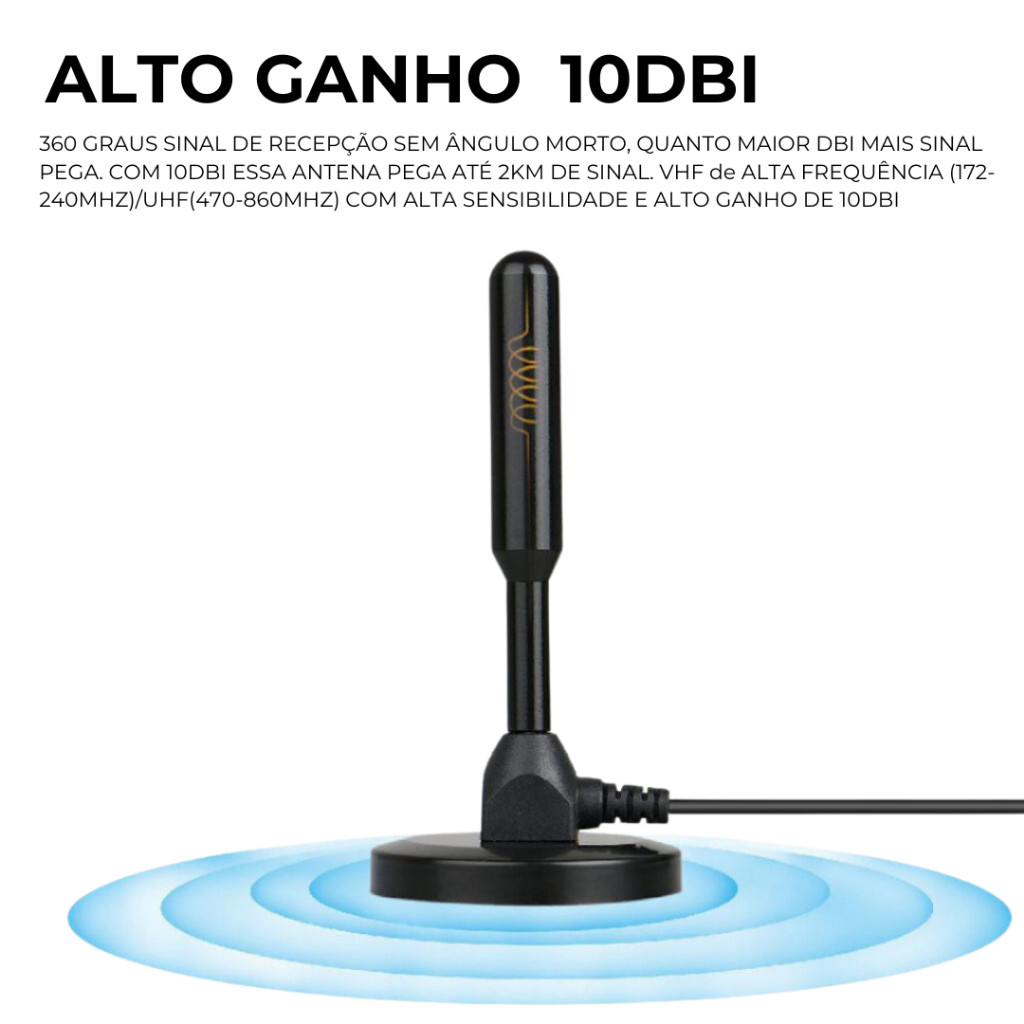 Se não souber qual modelo comprar, pode conferir essa comparação de recepção de sinal — ela com certeza vai te ajudar! Comparativo de Força de Recepção de Sinais: *------Se não souber qual escolher, basta pegar o modelo D!------* Basta que sua TV tenha uma entrada para antena e função de busca de canais para que possa ser usada. Os produtos de antena precisam ser conectados e, em seguida, a função de busca da TV deve ser ativada para funcionar. Ela serve para captar os canais abertos locais, e o desempenho também depende da intensidade do sinal na sua região. O ideal é posicionar a antena ao ar livre, em um local aberto ou em altura, pois isso garantirá um sinal mais forte. A diferença é que o "modelo com sinal reforçado" possui um reforçador de sinal, o sinal será mais forte e pode ser usado em qualquer região Preste atenção às especificações ao fazer a compra. Se você estiver em uma área com sinal fraco, como no campo, nas montanhas, etc., por favor, não compre a versão comum. É recomendado que você compre a versão com um reforçador de sinal, pois isso lhe permitirá receber mais canais. Antena 5DBI 5M: Antena Para Sinal Tv Digital HDTV Base Imã Rt-3003 Não recomendado o uso em zonas rurais, antena para zonas que possuem sinal. Apresentando a Antena Digital HDTV de máxima performance e tamanho incrivelmente reduzido no mercado. Capaz de captar sinais em HDTV digital, esta antena amplia significativamente suas opções de entretenimento, proporcionando qualidade de imagem em alta definição. Sua versatilidade permite a instalação tanto em ambientes internos quanto externos, e com um cabo de 5 metros, todas as suas necessidades estão atendidas em um único produto. Com um design funcional e moderno, essa antena compacta também é compatível com todos os modelos de TVs e conversores disponíveis no mercado. Especificações Técnicas: - Prova dágua - Sem energia - Base aderente - 360° de recepção - Frequência 470890 MHz - Impedância 75 Ohms - Ganho 10 ou 4 dBi - Cabo RF75 - Conector F macho - Instalação Interna e externo Itens Inclusos: - 1x Antena Digital - 1x Fio de 5M modelo com sinal reforçado: Configurar o guia: Passo1: fecha o final do cabo coaxial afexado ao conector ANT/IN na parte de trás da caixa conversor digital, plugar o plugue USV na porta USB da TV da Caixa Converter Digital. Passo 2: Mão herói a antena, pela janela, coloque o horizontal da vertical. Passo 3: Na TV s do menu de setup de STB, defina o modo de sintonizado para "Antenne" de "Air" Para umas instruções mais detalhadas, veja seu manual de TV. Passo 4: Na TV s do menu de setup de STB, estabelece TV para "scan" para canais. Isto pode às vezes ser mencionado como auto-programa, auto-scan, busca de canalização de scan de canal. Veja o Guia de TV para instruções detalhadas. Passo 5: Se a recepção for esporádica, tentar movimentar a antena para outra localização e resgatar a TV até encontrado a posição ideal. Passo 6: Fixar a antena na posição ideal que você encontrou. Conteúdo da embalagem: 1 x antena de TV,3M 1 x Amplificador de sinal 1 x Conector Universal3 1 x Manual