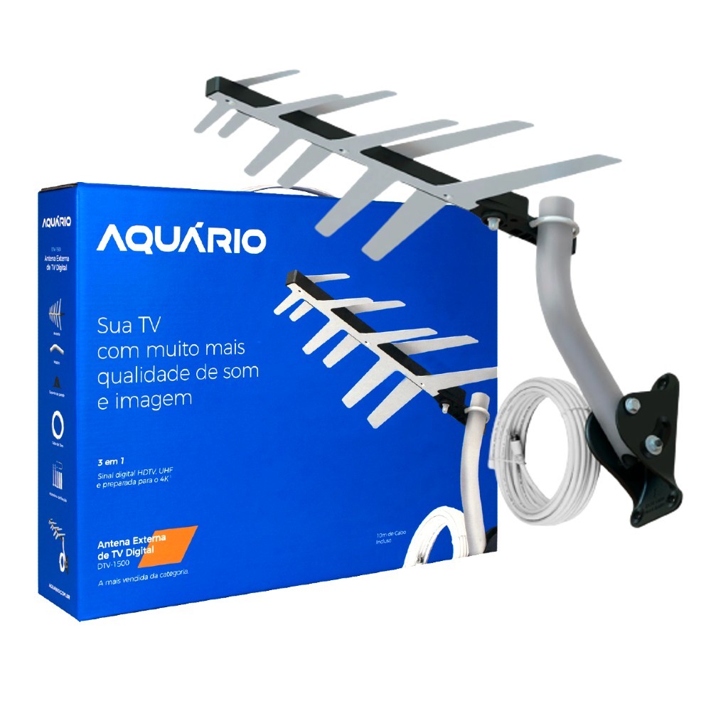 | Antena Externa Tv Uhf Hdtv Dtv-1500 Aquário Com Cabo 10 Metros E Su... este produto | R$ 89,90 | — | 4.8/5 | 12 |