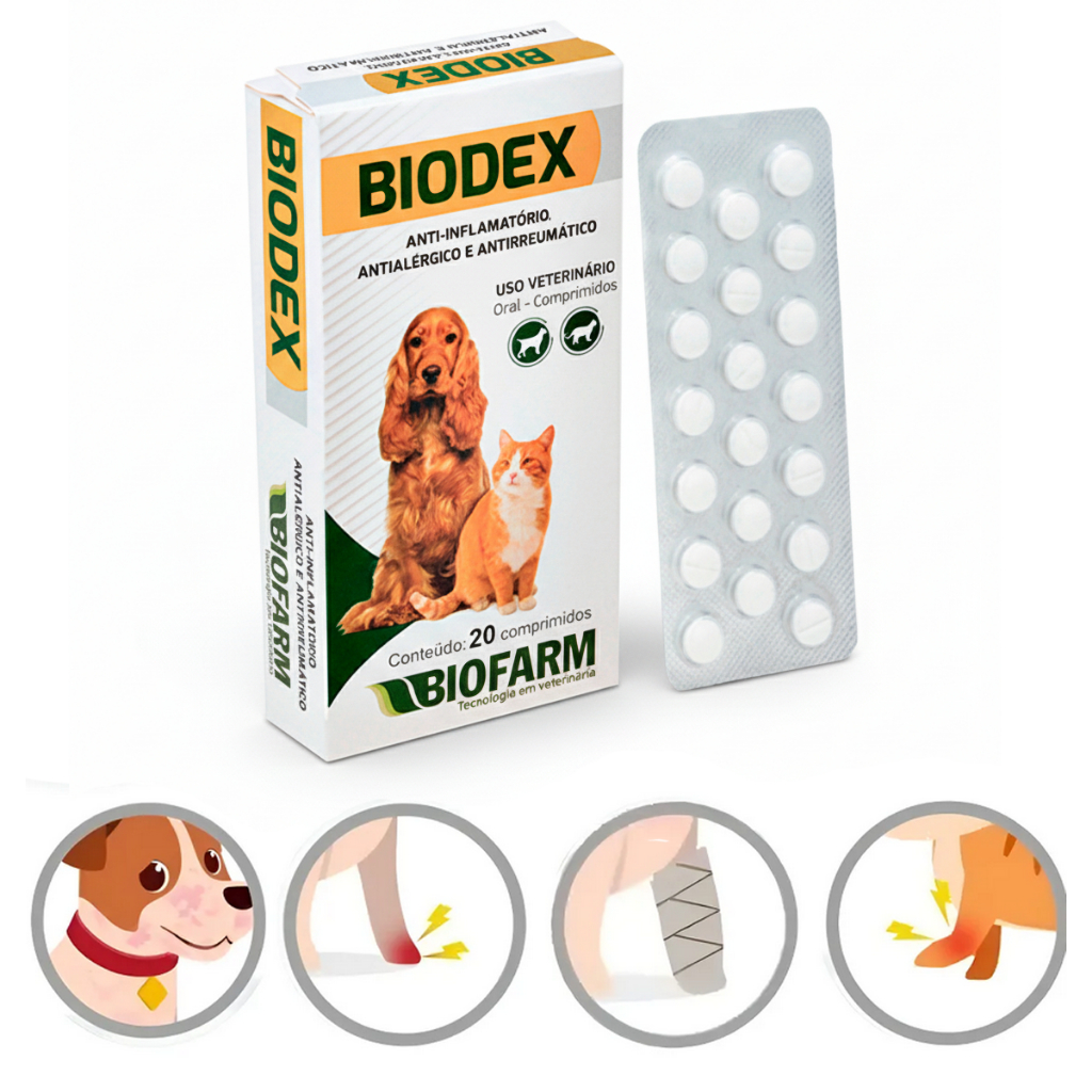 Anti inflamatorio para Cães e Gatos Dexametasona Biodex Alergia Dermatite - 20 Comprimidos + Bula