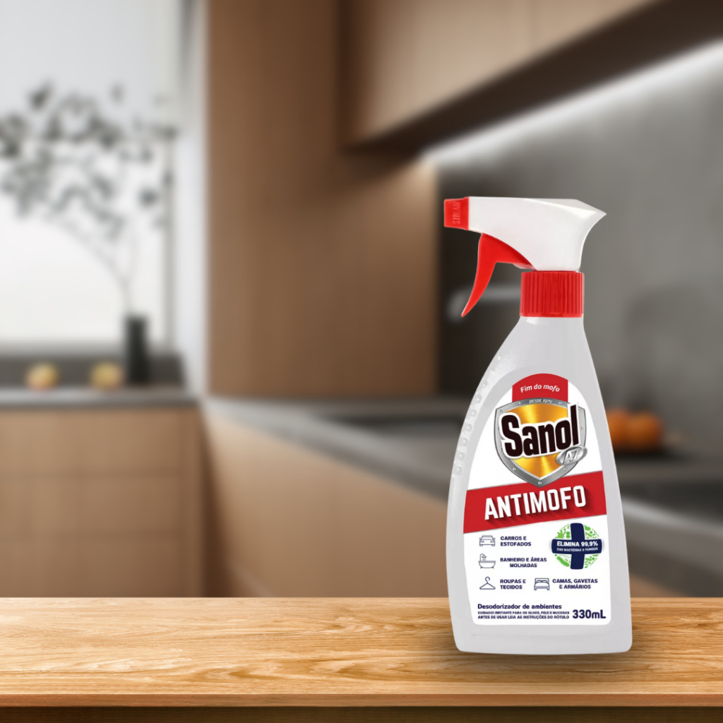 O Sanol Anti-Mofo 330ml é um spray desodorizador desenvolvido para eliminar fungos e mofos causados pela umidade extrema. Ele neutraliza odores desagradáveis e deixa uma fragrância suave e agradável no ambiente. É ideal para uso em armários, guarda-roupas, gavetas, pias, ralos, colchões e até no carro. Além disso, sua fórmula contém cloreto de benzalcônio, que atua como fungicida e bacteriostático. Aguardamos sua compra e estamos a disposição!