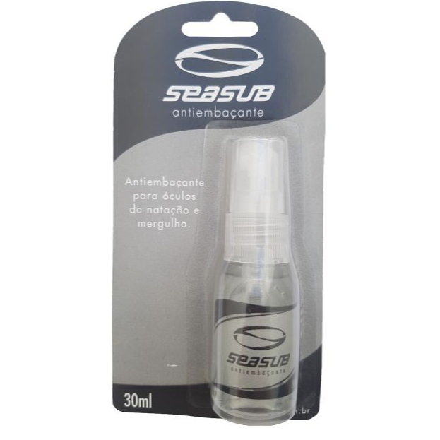 Desenvolvido para antiembaçante para máscaras de mergulho e snorkel. Limpa e impede o embaçamento das lente. Modo de usar: Borrifar o produto nas lentes e depois lavar com água em abundância depois do uso. Não esfregar produtos abrasivos nas lentes para não riscar. Embalagem spray com 30 ml. Certificado pela ANVISA.