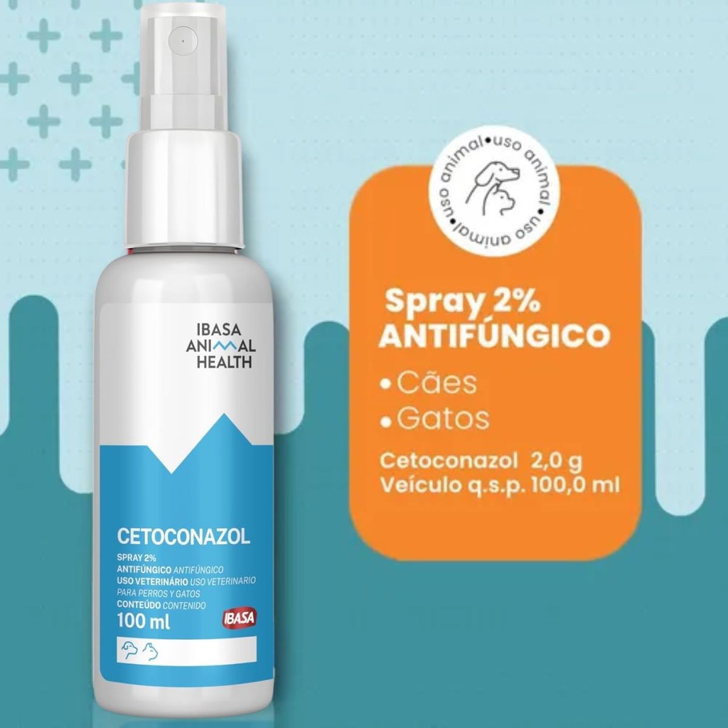 Antifúngico Cetoconazol 2% Spray 100ml Cães e Gatos - Ibasa