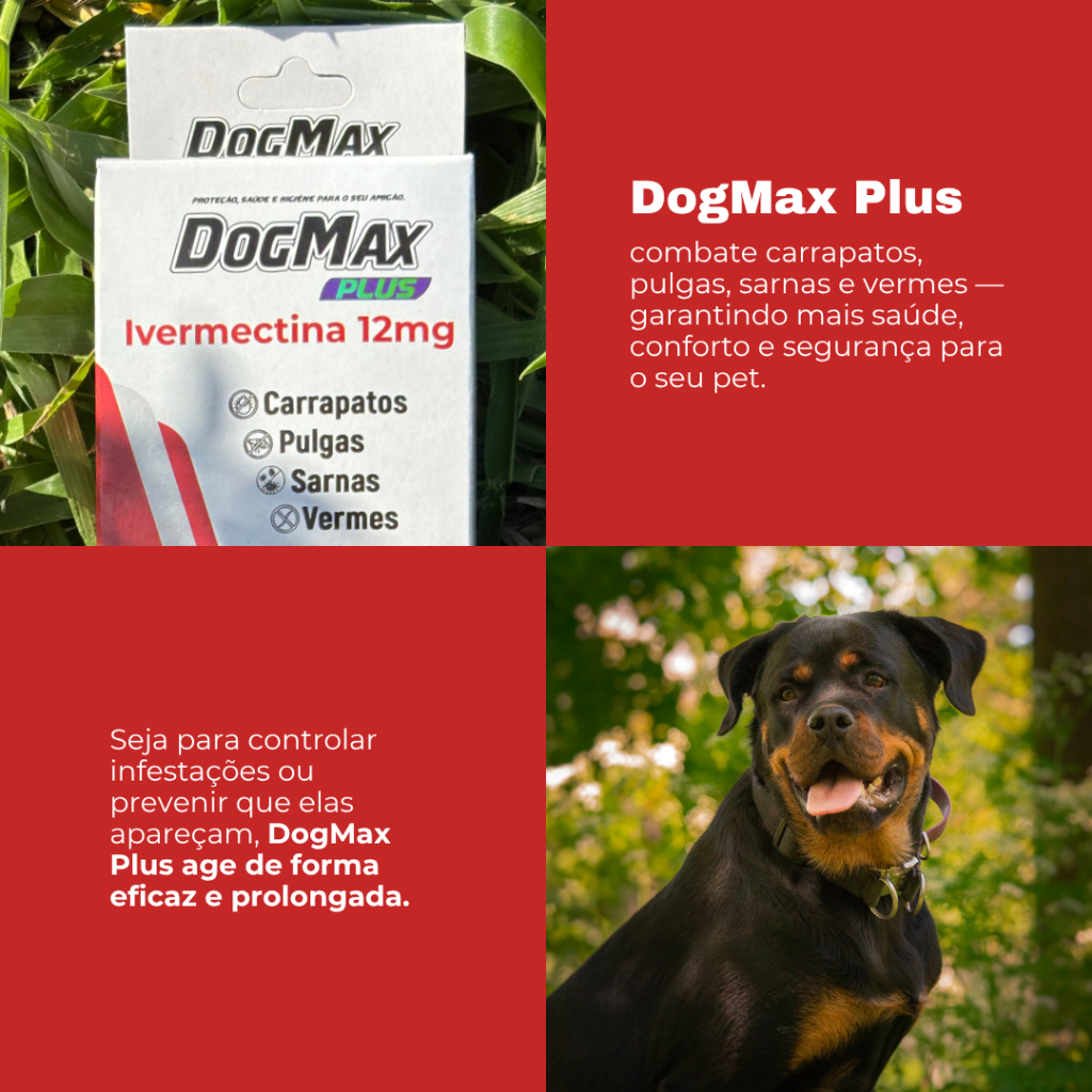 Ivermectina 12mg DogMax Plus Cães de 30kg a 60kg - 4 Comprimidos Tratamento eficaz contra pulgas, carrapatos, sarna e vermes. Indicado para cães de grande porte. Este produto é destinado a cães e gatos de 30kg a 60kg É recomendado 1 comprimido a cada 7 dias, Com uso regular, o DogMax Plus garante proteção eficaz para o seu animal de estimação, além de contribuir para sua higiene e bem-estar. É importante consultar um veterinário antes de iniciar o tratamento do seu pet e ler a bula do produto para maiores informações. Envio Imediato - Frete Grátis ivermectina, ivermectina para cães, ivermectina uso veterinário, ivermectina oral, ivermectina em comprimido, ivermectina veterinária, ivermectina pet, ivermectina antipulgas, ivermectina anticarrapato, antipulgas, vermífugo, antiparasitário, anti carrapato, tratamento para sarna, remédio para sarna, remédio para carrapatos, remédio para pulgas, controle de vermes, controle de parasitas, saúde animal, medicamento pet, produto veterinário, proteção para cães, tratamento antiparasitário, ivermectina original, ivermectina eficaz, ivermectina ação rápida.