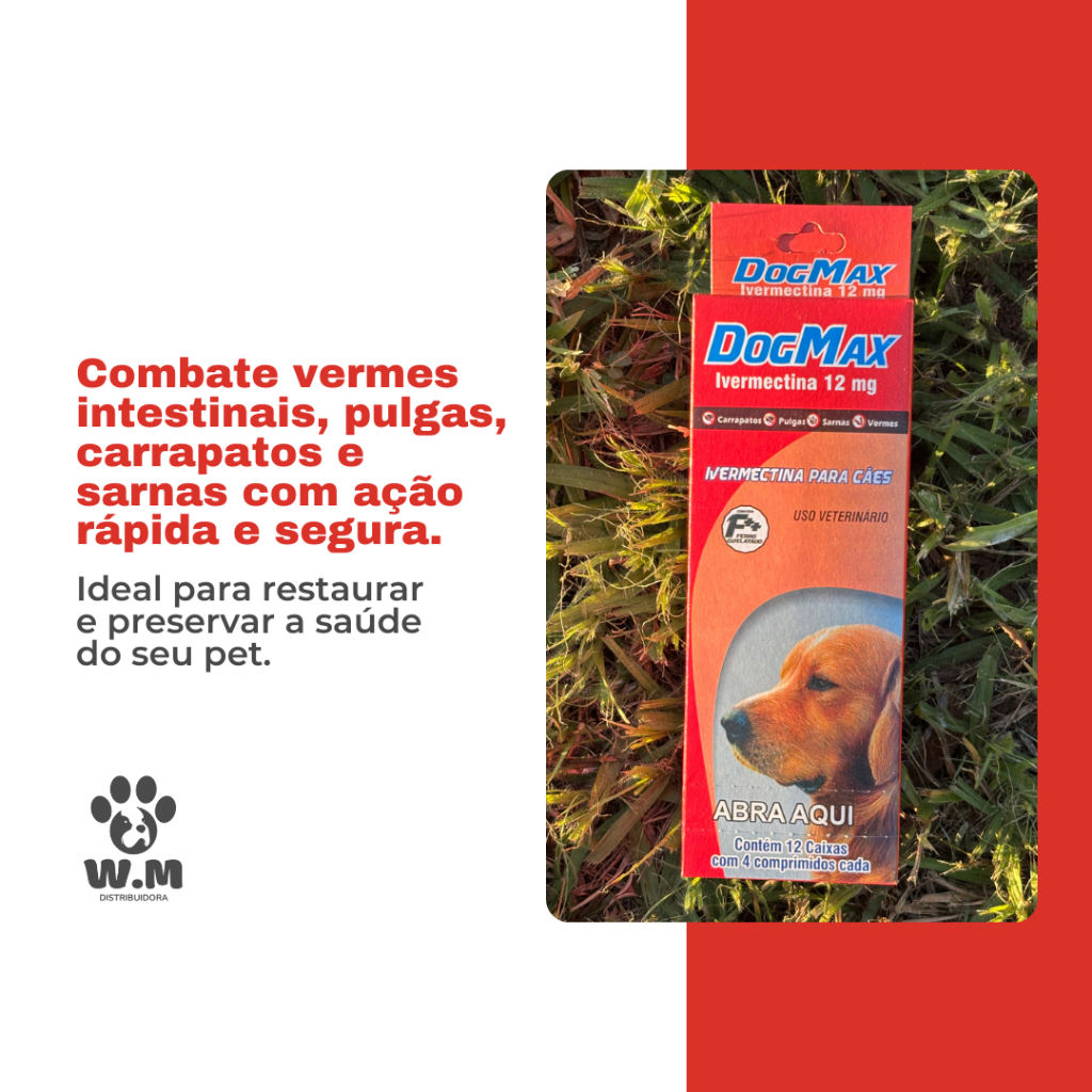 Antipulgas Carrapatos P/ Cães de 30kg a 60kg - Ivermectina 12mg
