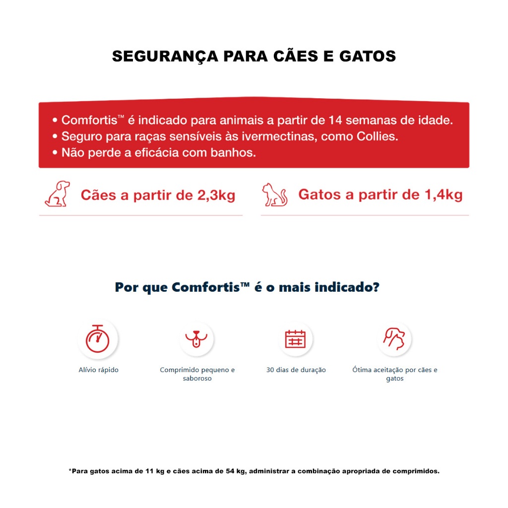ANTIPULGAS COMFORTIS ELANCO P/ CÃES DE 2,3 A 54 KG GATOS DE 1,4 A 11 KG 1 COMPRIMIDO ORIGINAL