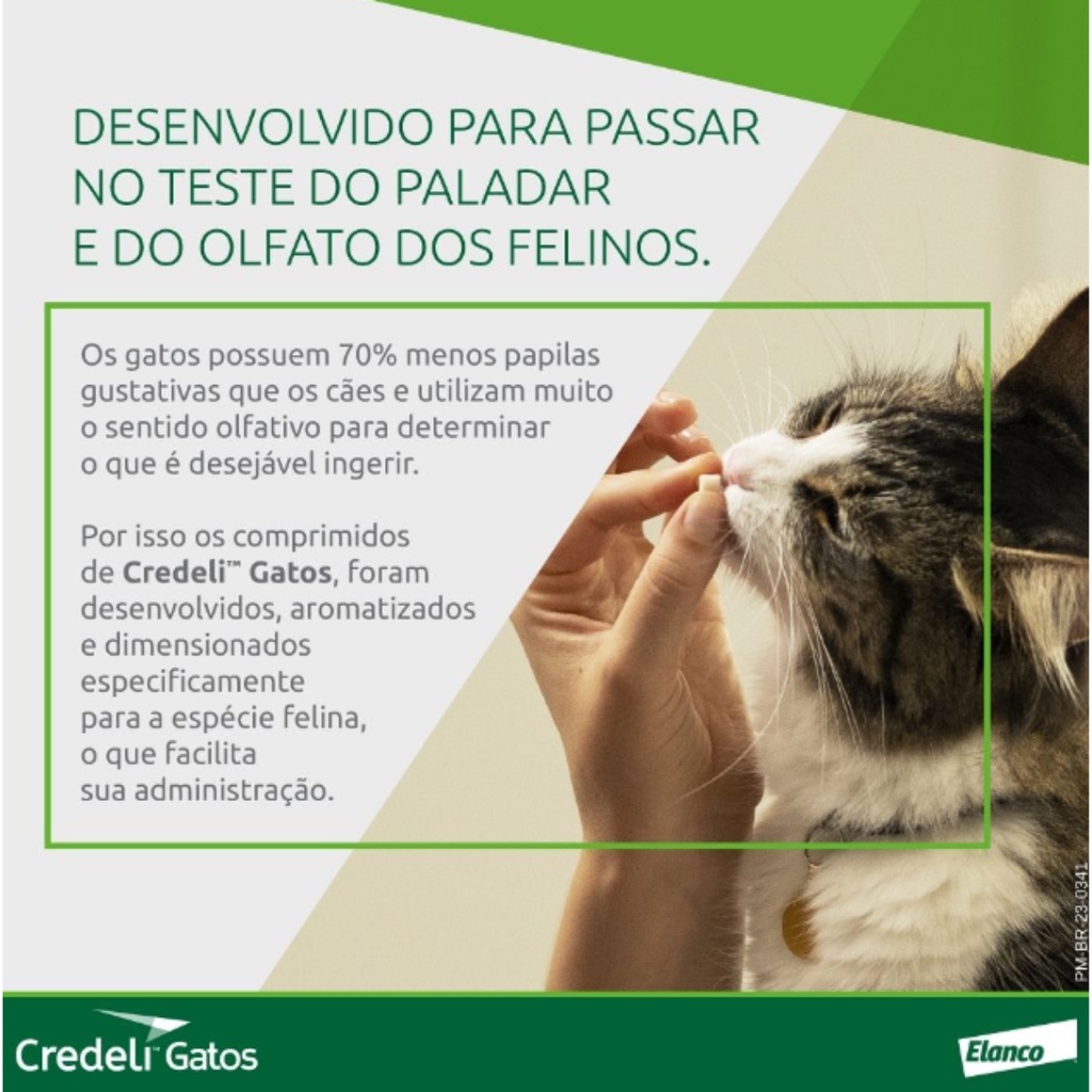 A MANADA ANIMAL é um marketplace de produtos veterinários. É a escolha certa para tutores que prezam pela qualidade dos produtos que seu animal necessita. Tudo com o suporte de uma equipe de veterinários e gestores com mais de 10 anos de experiência no mercado. Fique tranquilo, todos os nossos produtos são originais, adquiridos através de distribuidores credenciados! Ah, e todas as vendas acompanham nota fiscal! MANADA ANIMAL, Tranquilidade pra você, cuidado para ele! _______________________________________ CREDELI 48MG GATOS Testado e aprovado pelo paladar e olfato dos gatos Como especialista em gatos, a Elanco considerou a fisiologia e os comportamentos únicos desses animais ao desenvolver Credeli Gatos. Os comprimidos são aromatizados e dimensionados especificamente para a espécie felina, proporcionando uma administração sem estresse. Eficaz Início da ação em até 6 horas após a administração e 100% das pulgas eliminadas em 24 horas após a administração. Seguro Uma molécula desenvolvida exclusivamente pela Elanco que atua de forma segura protegendo gatos filhotes e adultos contra pulgas. Prático Comprimidos pequenos e delicados, aromatizados e dimensionados especificamente para a espécie felina, proporcionando uma administração sem estresse. Os riscos estão em toda parte, até para os gatos que não saem de casa Seu gato pode pegar pulgas de outros animais e humanos. Dos quintais e da rua. Durante uma voltinha ao redor da residência. Dentro de casa. Não é porque você não vê que elas não estão lá, fique atento! As pulgas podem ser difíceis de encontrar, por isso a proteção contínua é muito recomendada. Procure por irritação ou vermelhidão na pele em locais do corpo que tem menos proteção. Observe pequenos pontos pretos entre os pelos pois podem ser fezes de pulgas, sinal de que elas estão presentes Credeli Gatos é um comprimido mastigável, palatável sabor baunilha para administração oral a gatos adultos e filhotes a partir de 8 semanas de idade e pesando a partir de 0,9 kg ou mais. Credeli Gatos 12 mg: 0,9 kg – 2,0 kg (1 comprimido) Credeli Gatos 48 mg: 2,1 kg – 8,0 kg (1comprimido) Para gatos acima de 8,1 kg: Administrar a combinação adequada de comprimidos.
