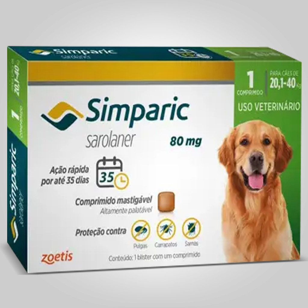 Antipulgas e Carrapatos Simparic 80mg para Cães de 20 a 40kg – 1 Comprimido – Zoetis
