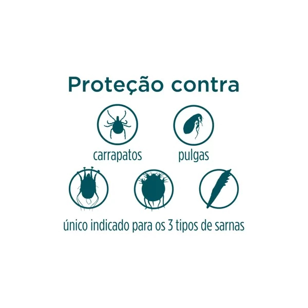 – Indicado para cães; – Para cães de 5,1 a 10kg; – Controle de pulgas e carrapatos; – Combate também três tipos de sarnas: Sarcópticas, Demodécica e Otodécica; – Começa a agir rapidamente; efeito a partir de 3 horas; – Comprimido mastigável; – Protege por 35 dias. Simparic é eficaz e altamente palatável, ele é indicado para ação contra pulgas, carrapatos e sarnas. O Antipulgas e carrapatos Simparic 20mg foi desenvolvido para combater as indesejadas pulgas e carrapatos, mantendo sua eficácia por até 35 dias. O simparic ajuda também a combater até três tipos de sarna a Sarcópticas, Demodécica e Otodécica, tem fácil aceitação pelos cachorros pois os comprimidos são palatáveis e saborosos. O antipulgas é ideal para cães a partir de 8 semanas de idade, é importante administrar o comprimido conforme o peso corpóreo do pet. Modo de usar Administrar via oral, 1 comprimido por mês. Simparic é um comprimido mastigável, sendo altamente palatável, podendo ser administrado com o sem alimentos. Sua fórmula age contra as pulgas resistentes, pode ser utilizado como parte do tratamento estratégico para controle de dermatite alérgica a picada de pulgas (DAPP). Dica – Simparic é indicado APENAS para cachorros. – O Simparic pode ser administrado em cães de pequeno, médio e grande porte de acordo com o seu peso corpóreo. – Não administrar em caso de hipersensibilidade por parte do animal à substância ativa ou a algum dos excipientes – Se a sua cadela estiver grávida aconselhe-se com o médico veterinário antes de administrar este medicamento veterinário.