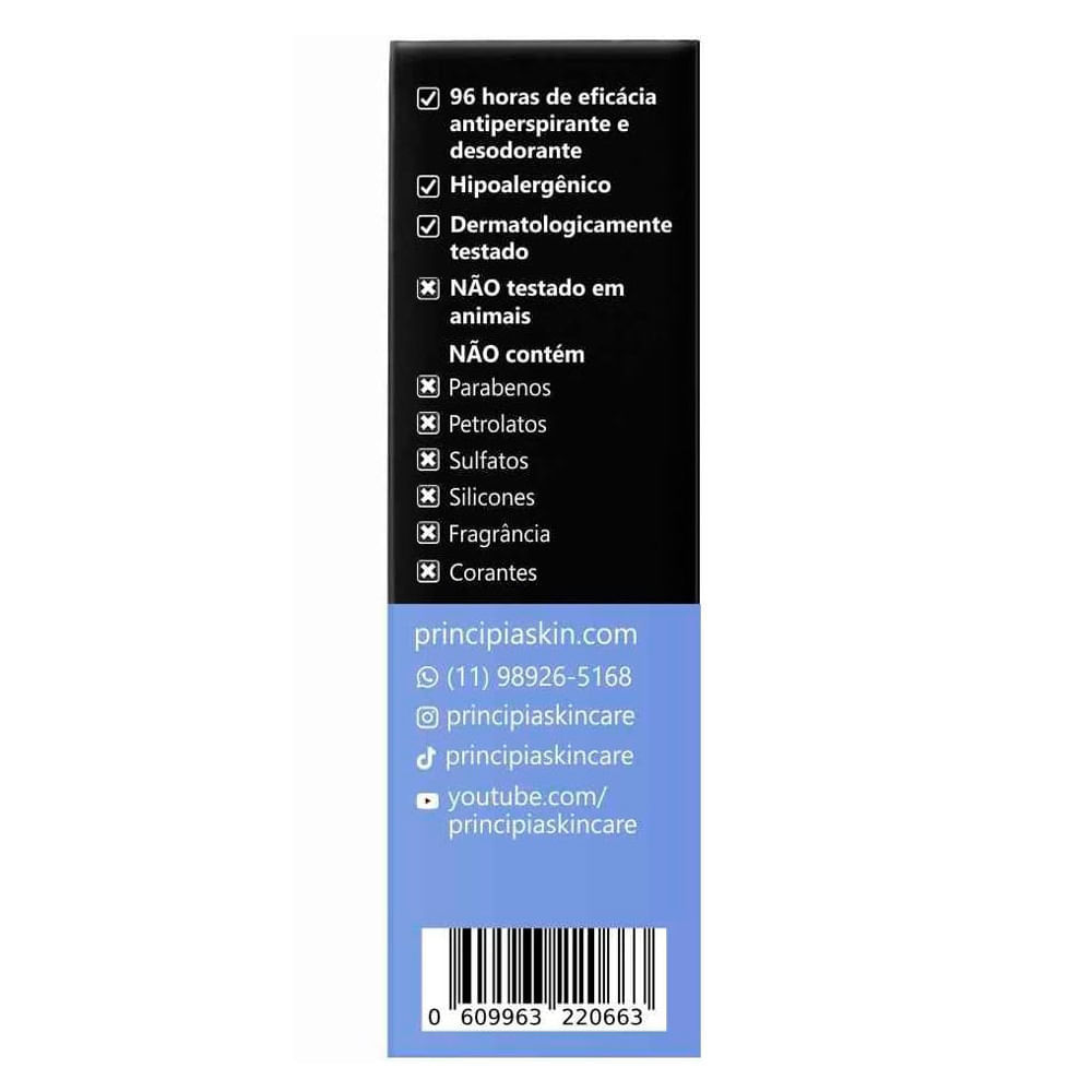 Antitranspirante Desodorante Principia AD-01 70ml Indicações: Principais * Reduzir e uniformizar a pigmentação * Clarear manchas escuras * Proporcionar maciez * Reduzir a transpiração * Prevenir o mau
