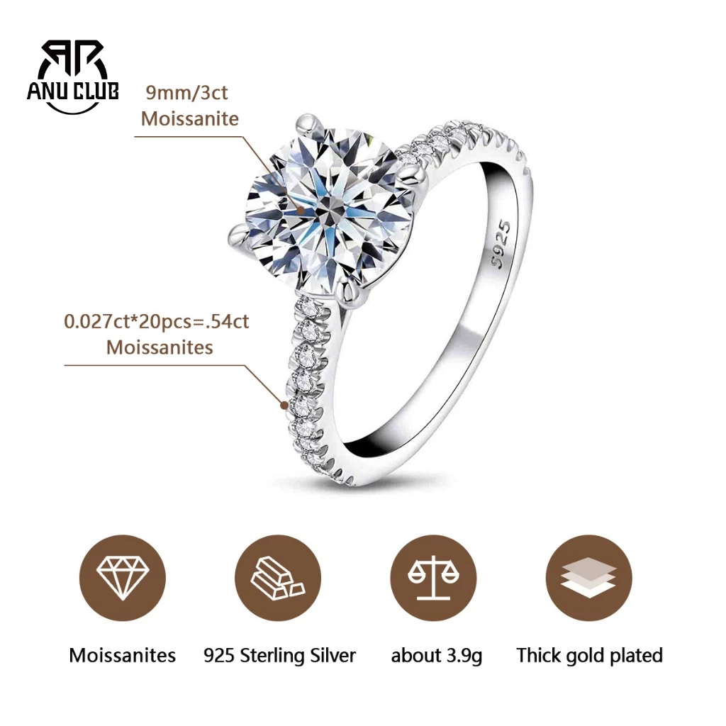 AnuClub Aliança Moissanita 3.54ct D/VVS1 Prata 925 Kit Presente - Frete Grátis Com certificado GRA