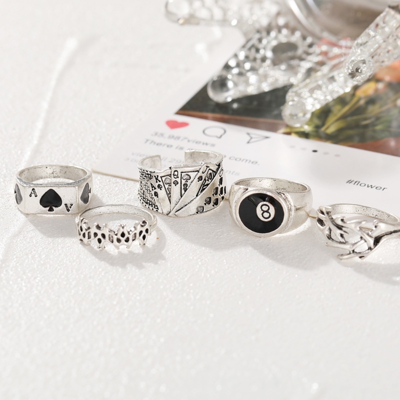 ANYS 5 Peças Conjunto Masculino Feminino Liga Punk Anel Cor Prata Novidade Acessório Dedo
