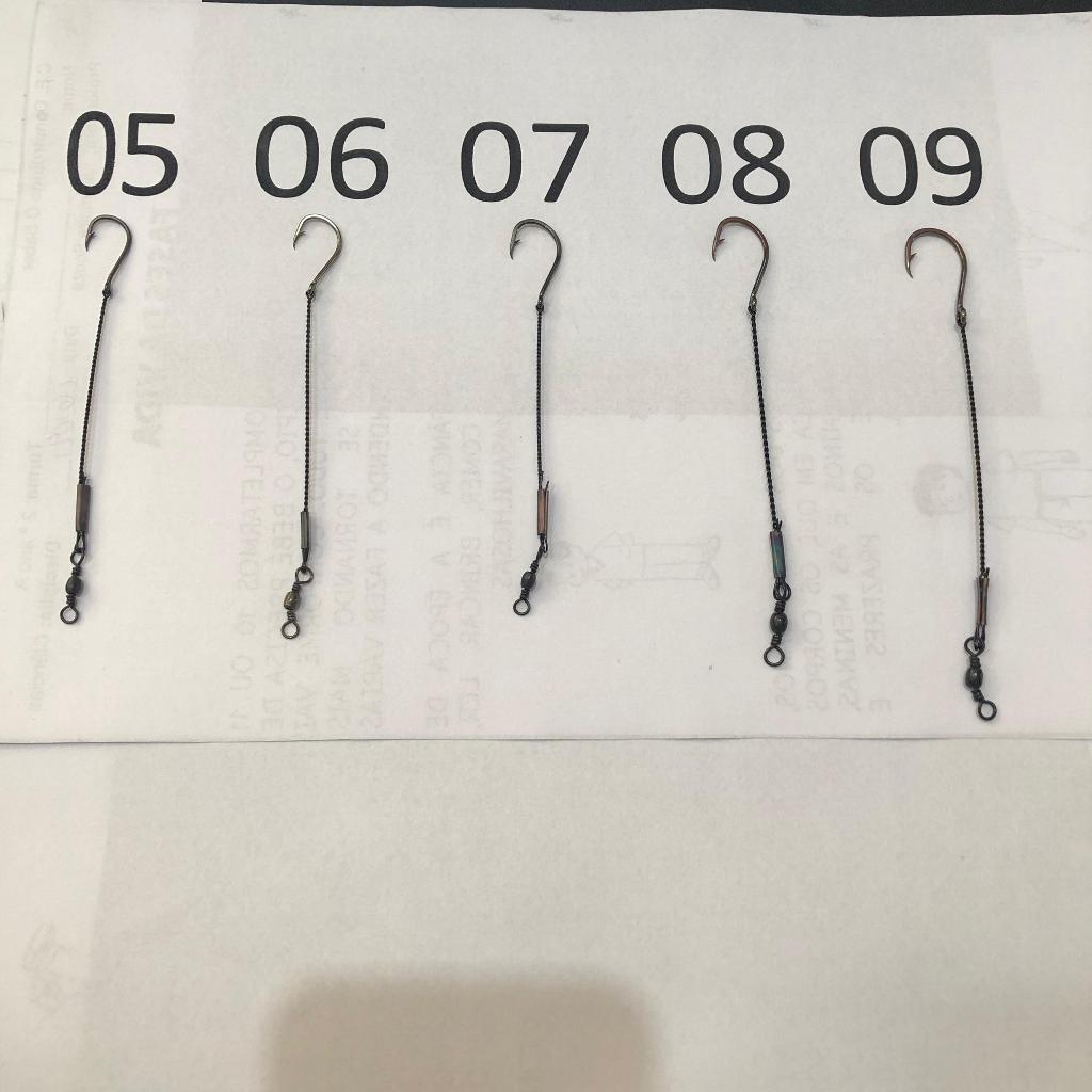 Anzol Encastoado Chinu é feito com cabo de aço flexível trançado e girador Modelo mais usado nas pescarias de piau, piapara, piauçu, piraputanga, pacu, tambaqui e outros. O anzol Chinu possui alto poder de fisgada. É dos preferidos pelos pesadores brasileiros. Pode ser usado em rio, lagoa, pesqueiros. Dica: Consulte o Guia de Tamanhos na foto do anúncio.