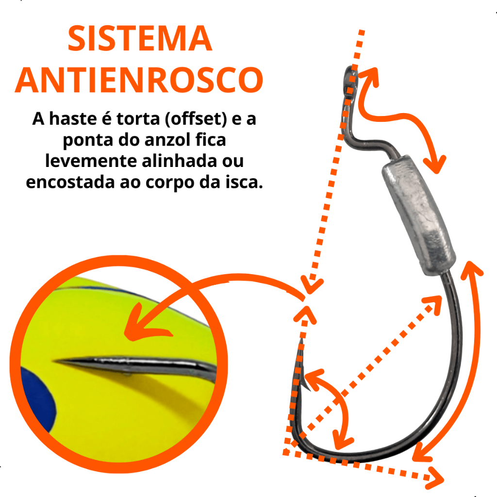 Anzol Offset Lastreado 5/0 2,5g Cart. 2pçs Summer pesca de tucunarés, traíras, robalos e outros predadores. O anzol offset lastreado é um tipo de anzol que combina duas características muito valorizadas por quem pesca com iscas soft. Offset é o formato com curvatura deslocada permite esconder a ponta do anzol na isca, criando um sistema antienrosco ideal para pescar em locais com galhos, capim ou estruturas submersas. O lastro um pequeno peso de chumbo fixado no corpo do anzol. Ele ajuda a afundar a isca de forma natural, facilita o arremesso, mantém o nado estável e dispensa chumbo extra na linha. Esse modelo é muito usado para soft baits como shads, worms, grubs e criaturas, principalmente na pesca de tucunarés, traíras, robalos e outros predadores. Especificações: Marca: Summer Modelo: Offset Super Lock Acabamento: Black Nickel Ideal para: Iscas Soft Material: Aço Carbono Lastro: Chumbo Quantidade: Cartela com 2 peças NºTamanho-Medida-Peso: N°3/0 - 5,1cm x 2,5cm - 2,5g N°3/0 - 5,1cm x 2,5cm - 5g N°4/0 - 5,3cm x 2,7cm - 2,5g N°4/0 - 5,3cm x 2,7cm - 5g N°5/0 - 5,8cm x 3,0cm - 2,5g N°5/0 - 5,8cm x 3,0cm - 5g N°6/0 - 8,3cm x 3,0cm - 2,5g N°6/0 - 8,3cm x 3,0cm - 5g Imagens meramente ilustrativas. As medidas foram aferidas de forma manual e podem conter pequenas variações.