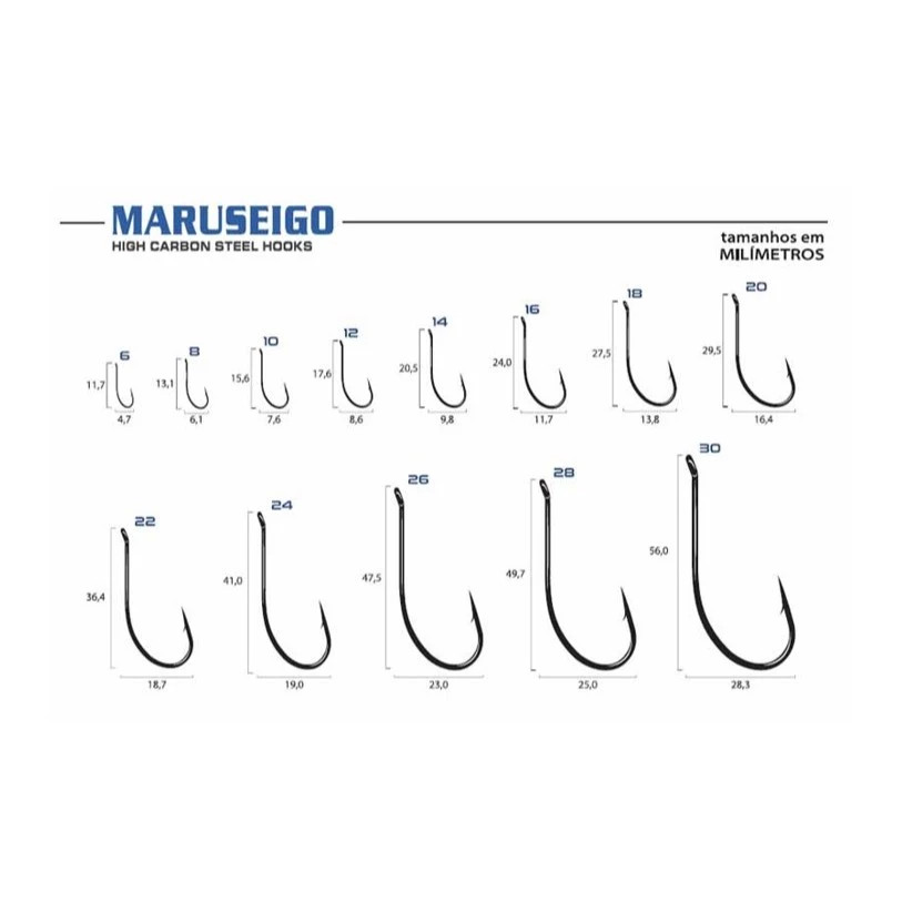Anzol Marine Sports Super Maruseigo Black Características: Destinado para os mais diversos tipos de pesca, possui ótima penetração graças à sua ponta reta super afiada e curvatura especial. Indicado tanto para peixes de água doce quanto para de água salgada. - Forjado em Aço Carbono, reforçado 2x e com acabamento Black. - Ponta agulha farpeada, curvada para a esquerda e afiada quimicamente. - Haste longa terminada em olho (argola)