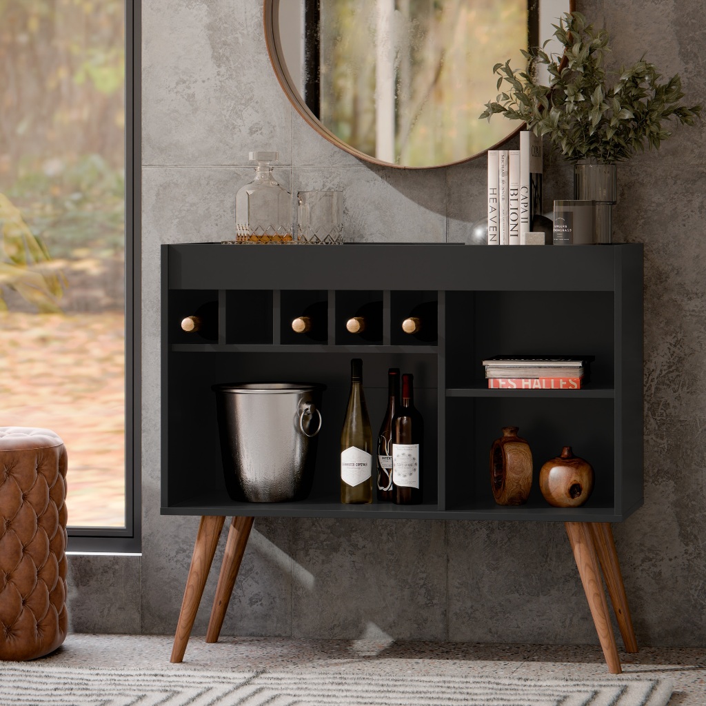 Aparador Adega Bar Buffet para Sala de Estar com Pés Palito Moderno e Nichos Luxo