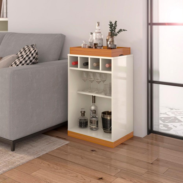 Sempre buscando trazer o que há de moderno e sofisticado para nossos clientes. A ViaNossa desenvolveu o aparador bar Astúrias, um móvel versátil e compacto. Desenvolvido para ser usado em diversos ambientes da sua casa, ele é fabricado em MDP de 15mm, adega para 4 garrafas, bandeja em MDF que poderá acomodar taças, jarras e itens decorativos, possui nichos e prateleira garantindo espaço para organização e praticidade. Completando seu ambiente com inovações e versatilidade. Especificação Técnica: - Material: MDP; - Acabamento: Pintura Uv; - Número de Nichos: 6 Nichos; - Número de gavetas: Não possui; - Número de Prateleiras; 1 Prateleira; - Produto Precisa de Montagem? Sim; - Garantia: 3 Meses; - Instruções de Cuidado: Limpar com pano levemente umedecido; - Medidas do Produton(LarguraXProfundidadeXAltura): 48x33x85 cm; - Conteúdo da Embalagem: ( 1 Aparador Bar - Entregue 1 Volume); Observações Importantes: - Produto não deve ficar exposto diretamente ao sol, calor e umidades excessivas. - Recomendações de Limpeza: Utilize somente pano seco ou levemente umedecido. - O produto pode sofrer alterações de tonalidade conforme o seu monitor. - Imagens meramente ilustrativas, produto não acompanha objetos de decoração e eletrônicos. - Ao receber, verifique a embalagem. Se detectar irregularidades, recuse o recebimento e nos contate. - Não nos responsabilizamos, no ato da entrega, por subir escadas/elevadores. - Nós não nos responsabilizamos pela montagem e por problemas causados pela montagem realizada por você ou montador contratado. Enfatizamos a recomendação aos nossos clientes de contratar um montador profissional. - Eventualmente, se faltar qualquer peça ou acessório no produto, nos contate e enviaremos a peça/acessório sem custo adicional.