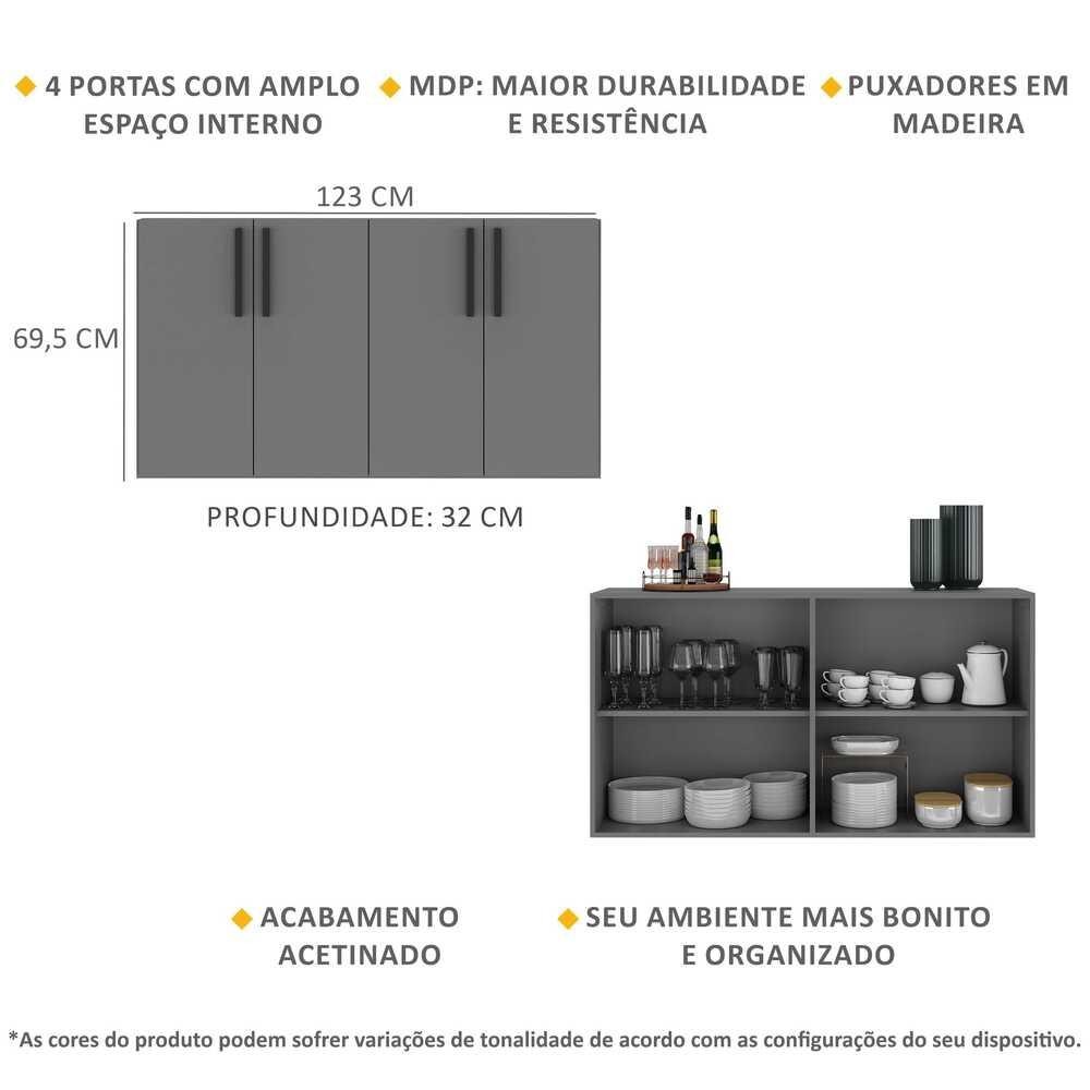 O Aparador Buffet 4 portas Viena Multimóveis é produzido em MDP com acabamento acetinado (cerca de 20% de brilho), que garante maior durabilidade, facilidade na limpeza, além de um acabamento superior. Com 4 portas e puxadores em madeira, possui um excelente espaço interno para organizar seus pertences (as prateleiras internas suportam 5 Kg cada e o tampo 10 Kg). Seu design minimalista, torna o móvel muito versátil, podendo ser utilizado de diversas maneiras e em qualquer ambiente. Conteúdo da Embalagem: 1 (um) aparador 1 (um) kit com 4 puxadores Dimensões do produto montado: Altura: 69,5cm | Largura: 123cm | Profundidade: 32cm *Você pode consultar as medidas internas na imagem técnica do produto. *As cores do produto podem sofrer variações de tonalidade de acordo com as configurações do seu dispositivo. *Obrigatório fixar na parede. Imagem meramente ilustrativa. Decoração e eletros não acompanham o produto. O produto será entregue desmontado e não disponibilizamos o serviço de montagem.
