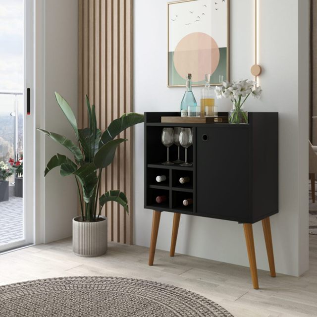Aparador Buffet Balcão Multiuso Para Sala Bar Adega Com Porta - Preto