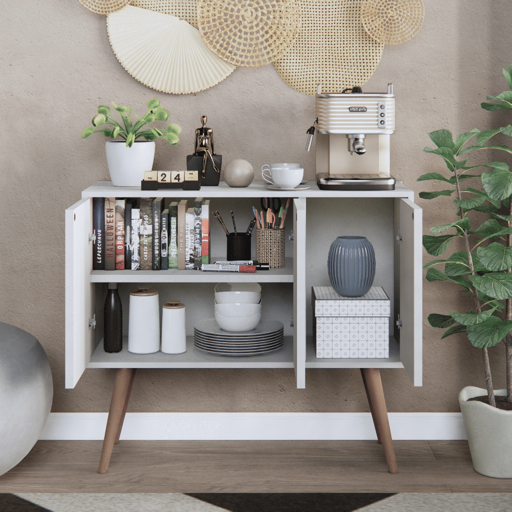 Aparador Buffet Bonatto 3 Portas com Pés em Madeira Cantinho Do Café