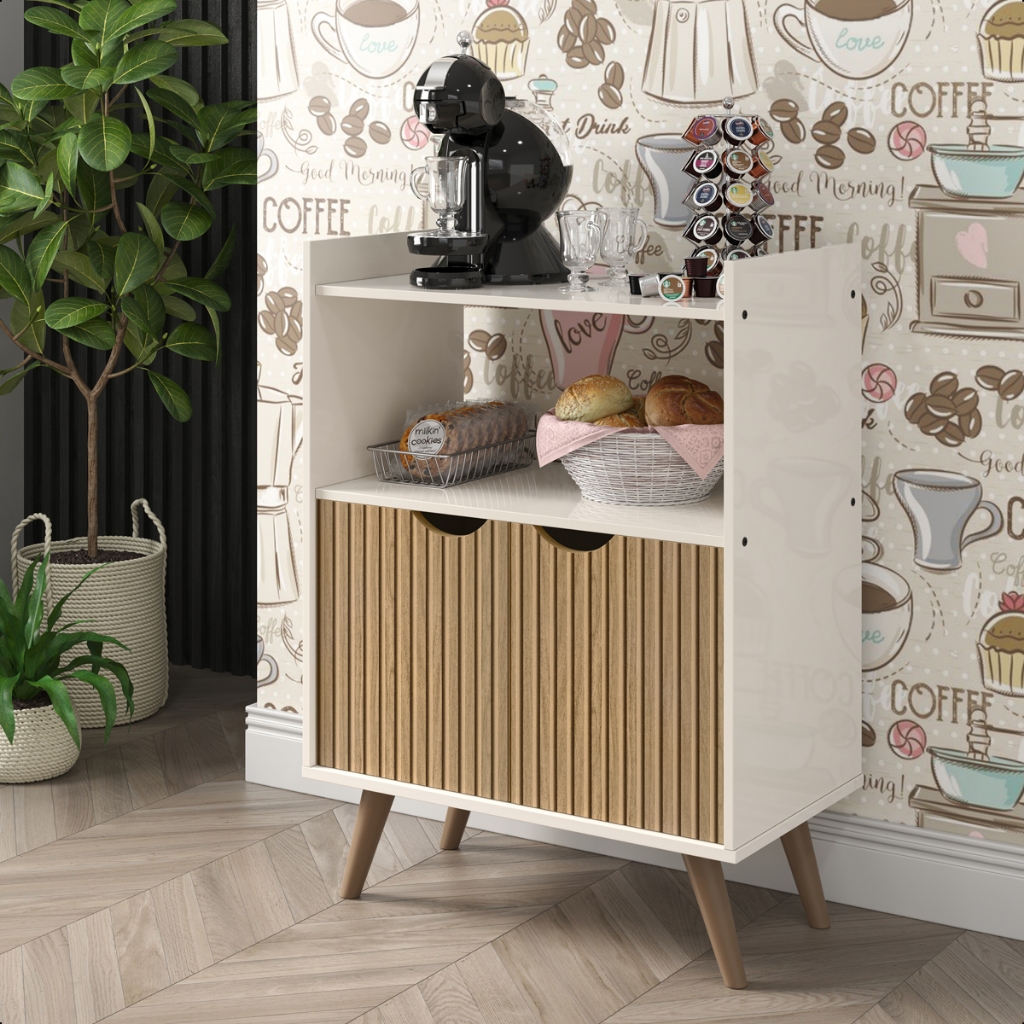 Esse é o aparador ideal para sua casa. Muito prático e diferenciado dos demais produtos do mercado, irá remodelar todo o seu ambiente. De fácil manuseio e linda apresentação! Design moderno, proporcionando estilo e elegância para sua casa! CARACTERISTICAS: Estrutura em MDP Retrô 2 portas OBS: O RIPADO É FEITO EM PINTURA 3D QUE REPRODUS O EFEITO DE RIPADO A pintura de alta tecnologia 3D, que reproduz com fidelidade o acabamento ripado PINTURA: Produto com pintura ultravioleta, maior resistência e durabilidade, além de proporcionar um acabamento perfeito para o produto. INSTRUÇÕES DE USO E MANUTENÇÃO: Limpar apenas com pano levemente umedecido com água MONTAGEM: Este produto acompanha kit de montagem + manual de instrução detalhando passo a passo de como montar. Descrição: Montado Altura 82,5 cm Largura 59,5 cm Profundidade 35 cm - Os objetos que ambientam as fotos não acompanham o produto; - O produto será entregue desmontado; - É de inteira responsabilidade do cliente a montagem do produto e/ou instalação, custos de transporte por escadas e/ou elevadores, guincho ou içamento, assim como possíveis avarias provenientes de manuseio inadequado; - Embora o produto acompanhe o manual de montagem, verifique a complexidade antes de decidir montá-lo sozinho, recomendamos que contrate um profissional de sua confiança; - Mantenha as informações de contato e endereço de entrega atualizadas para entrarmos em contato, caso seja necessário; - Fique atento, nossas cores podem sofrer alterações dependendo do seu monitor; - ANTES DE MONTAR O SEU PRODUTO, certifique-se que todas as instruções dispostas no manual, bem como todas as ferragens descritas, estejam presentes dentro da embalagem. Verifique se há alguma peça avariada, caso esteja, prestaremos a devida assistência dentro do prazo da garantia.