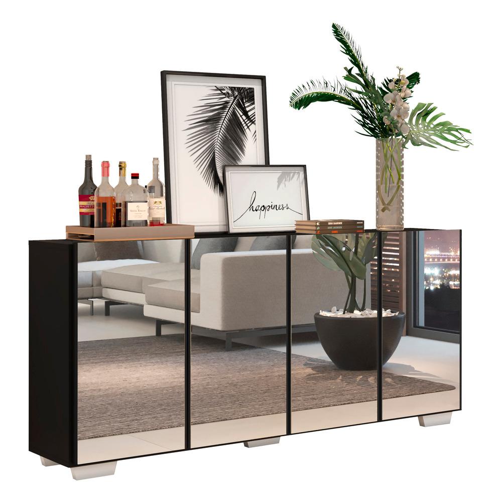 Aparador Buffet com Espelho Multimóveis Vegas com 4 Portas FG3560 Preto/Branco