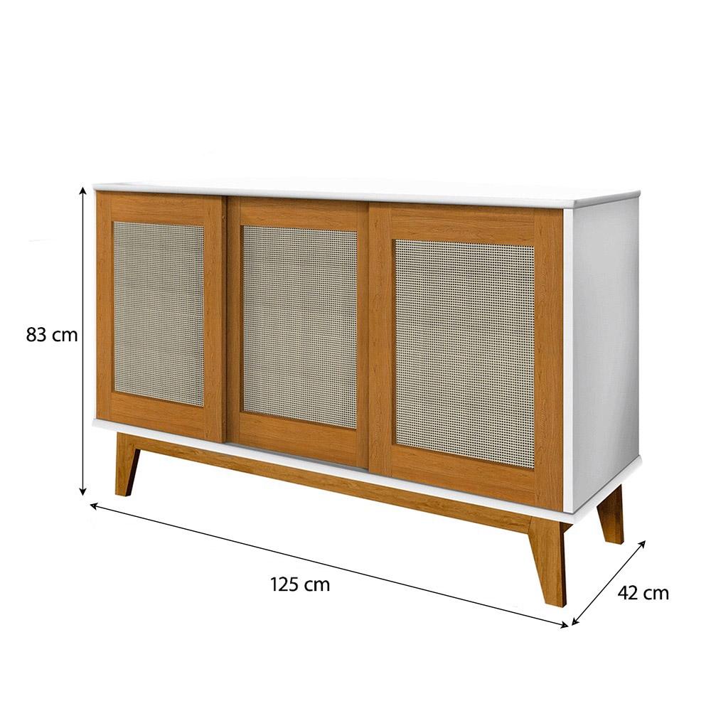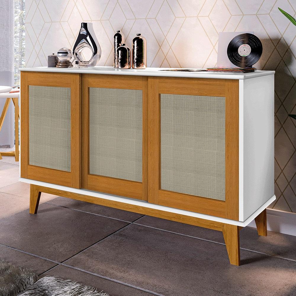 Aparador Buffet Detroit 3 Portas com Pés em Madeira Maciça