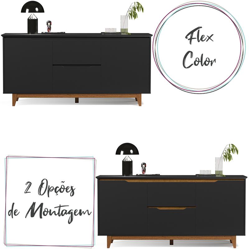 Aparador Buffet Flow 2 portas 2 Gavetas Pés Madeira Maciça