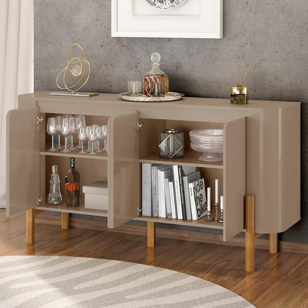 Aparador Buffet Imbassai Sala 4 Portas Pés Madeira Maciça