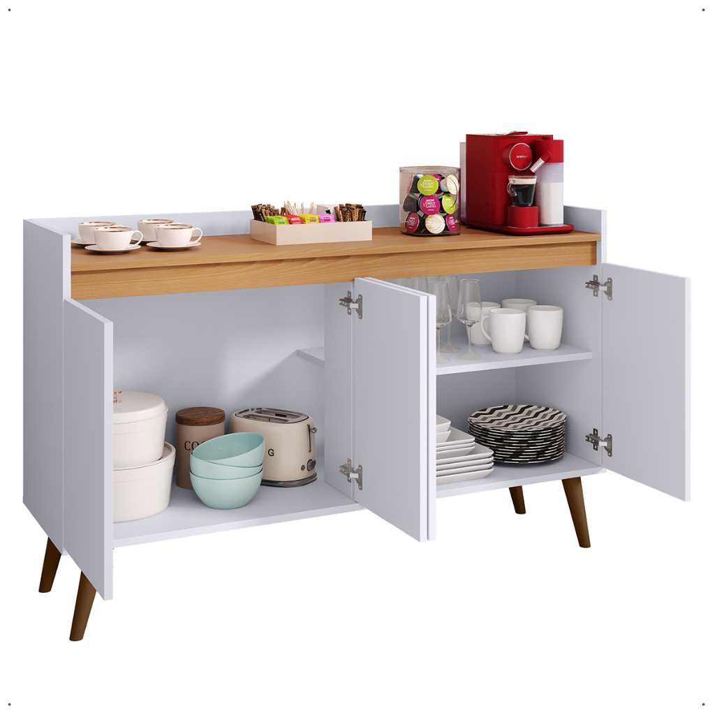 *Aparador Buffet Retrô Sala Hal De Entrada Cantinho Do Café Prateleira Interna Organizador 4 Portas