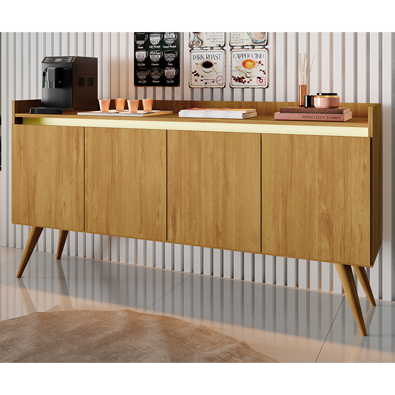 Aparador Buffet Sala Gold 4 Portas com Pés de Madeira Maciça