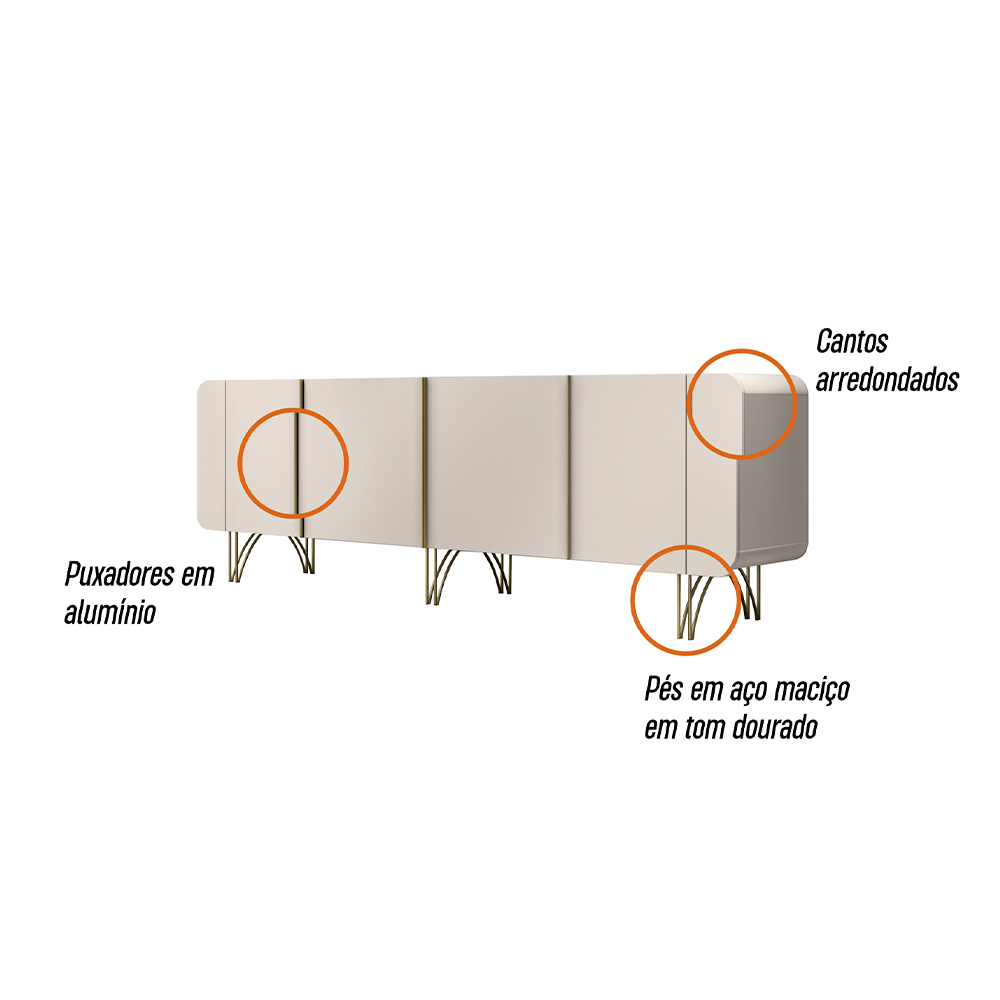 Aparador Buffet Sala Saluti Com 4 Portas e Pés em Aço