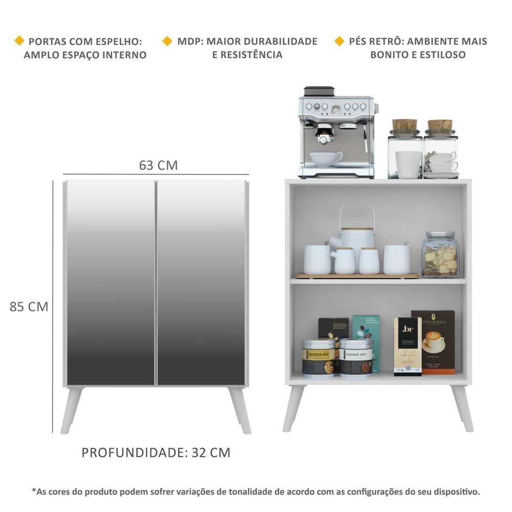 Aparador Cantinho do Café com Espelho e Pés Retrô 2 Portas Multimóveis Branco
