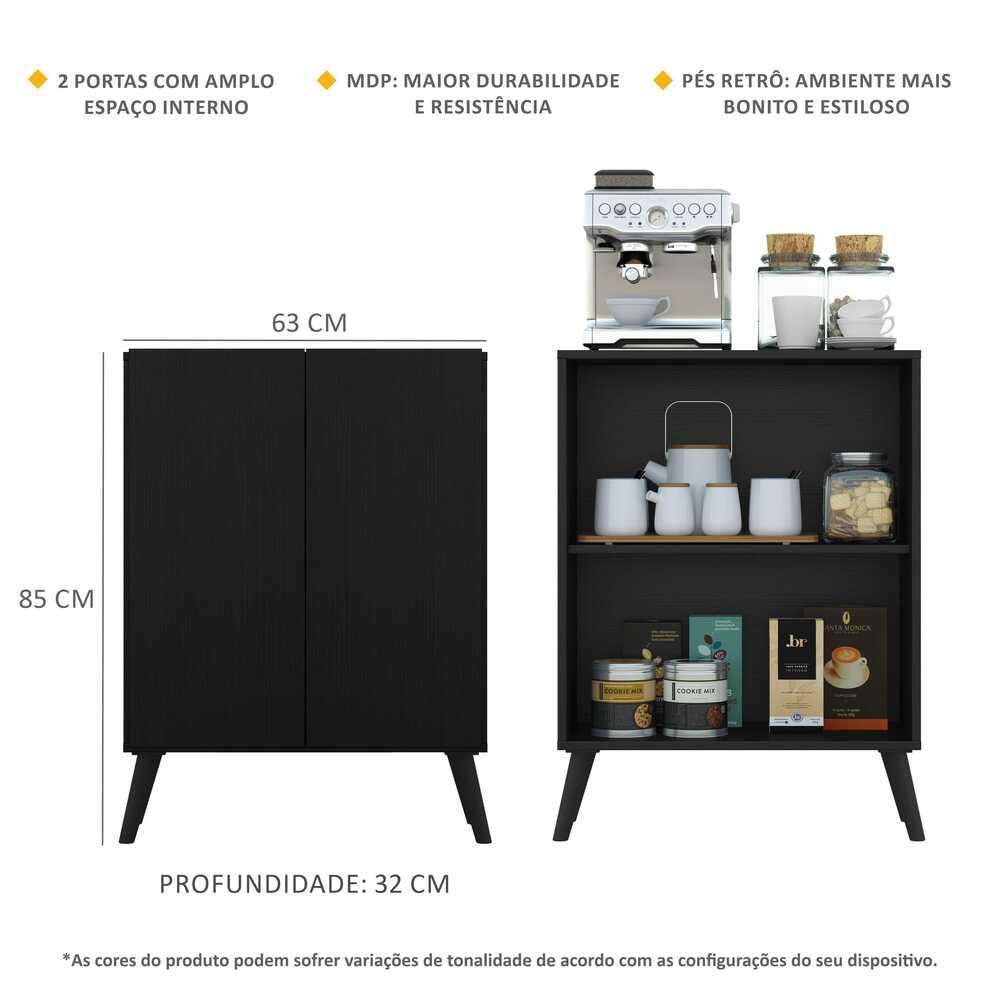Aparador Cantinho do Café com Pés Retrô e 2 Portas Multimóveis Preto