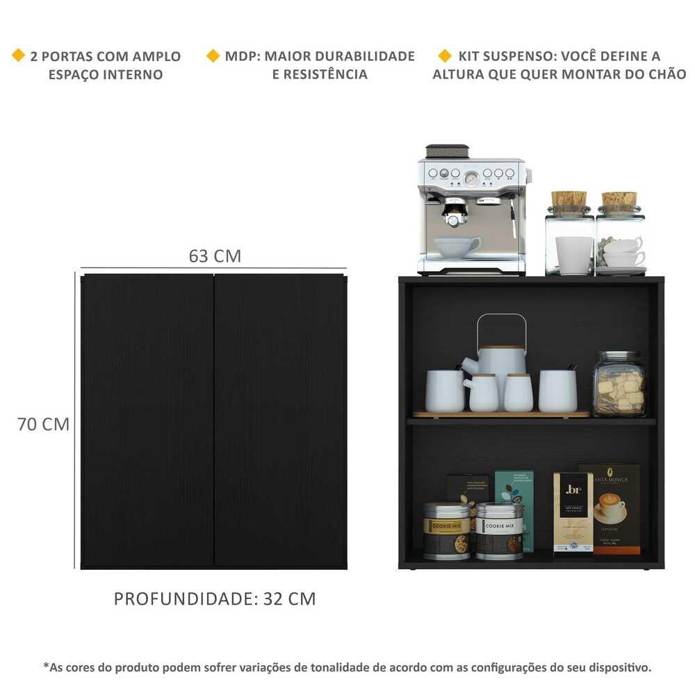 Aparador Cantinho do Café Suspenso 2 Portas Multimóveis Preto