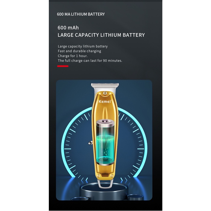 Aparador De Cabelo Kemei Profissional Mini Máquina De Corte Elétrica Recarregável Homens Sem Fio De Metal Acabamento